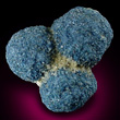 Usually in small crystals, which are in prismatic, tabular, or equidimensional form. Crystals are sometime striated. Other forms are massive, crusty, radiating, fibrous, earthy, columnar, stalactitic, as thin needles, and in ball-like aggregates. Also occurs in dense groups of tabular or prismatic crystals. Azurite may also form as a pseudomorph over other minerals, retaining the original crystal shape of the mineral that it formed a pseudomorph over.